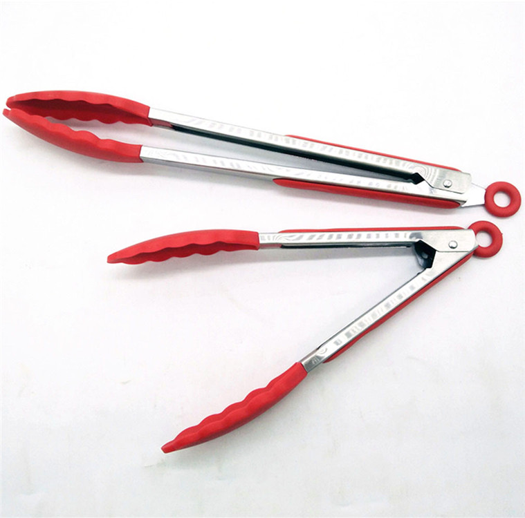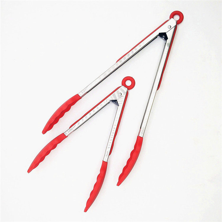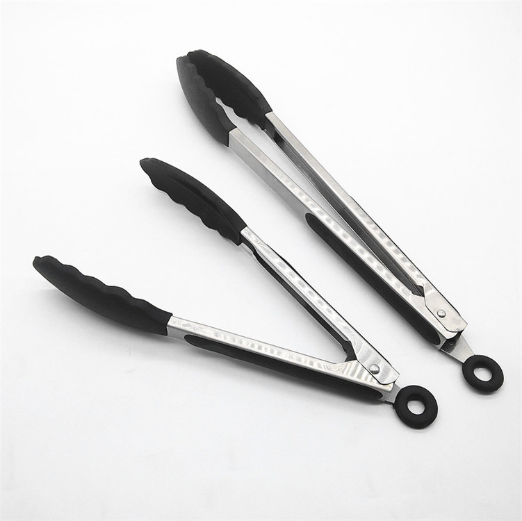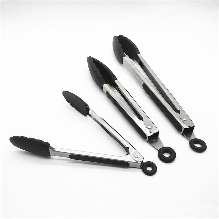 Pinze per alimenti in silicone in acciaio inossidabile, Set di 3 cucchiai da insalata di non stili con punte di bloccaggio